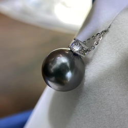 High Quality Natural Perfect Round 11-12mm Tahitian Pearl Pendant With Zircon Inlay and 925 Silver for Jewelry