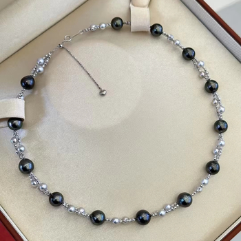 שרשרת פניני ים באיכות גבוהה טבעית 2 סוגי פנינים עם שרשרת פלאש זהב 18k ואקל תכשיטים